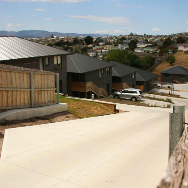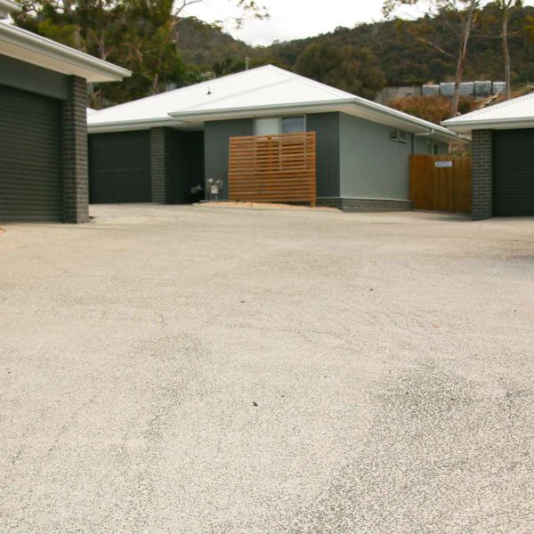 Gravel is the lowest cost option for your driveway. Good for long rural driveways or for those who appreciate the look of gravel. Comes in two colour options approved by Transport Tasmania; bluemetal or red gravel. Gravel driveways require maintenance every 5 years on average.